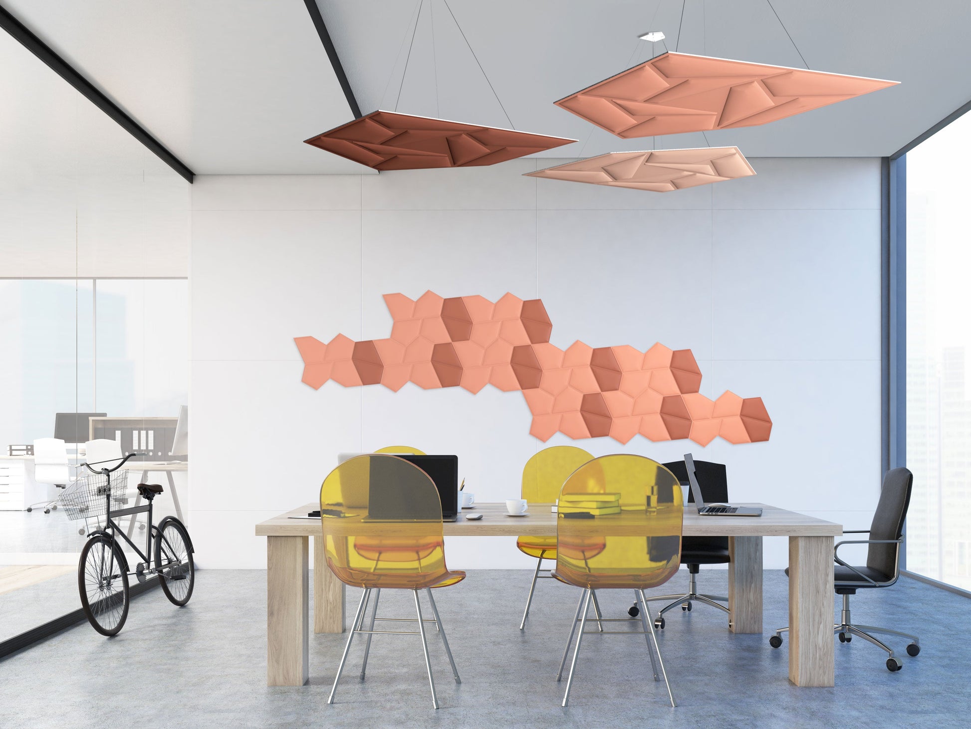 PENRAY 01 kombiniert nachhaltige Materialien mit exzellenter akustischer Wirkung und einem ausdrucksstarken Design. Das modulare 3D-Akustikelement überzeugt durch eine geometrische Oberflächenstruktur und clevere Farbgestaltung – ideal für kreative Innenraumkonzepte mit hohem Anspruch an Akustik und Ästhetik.