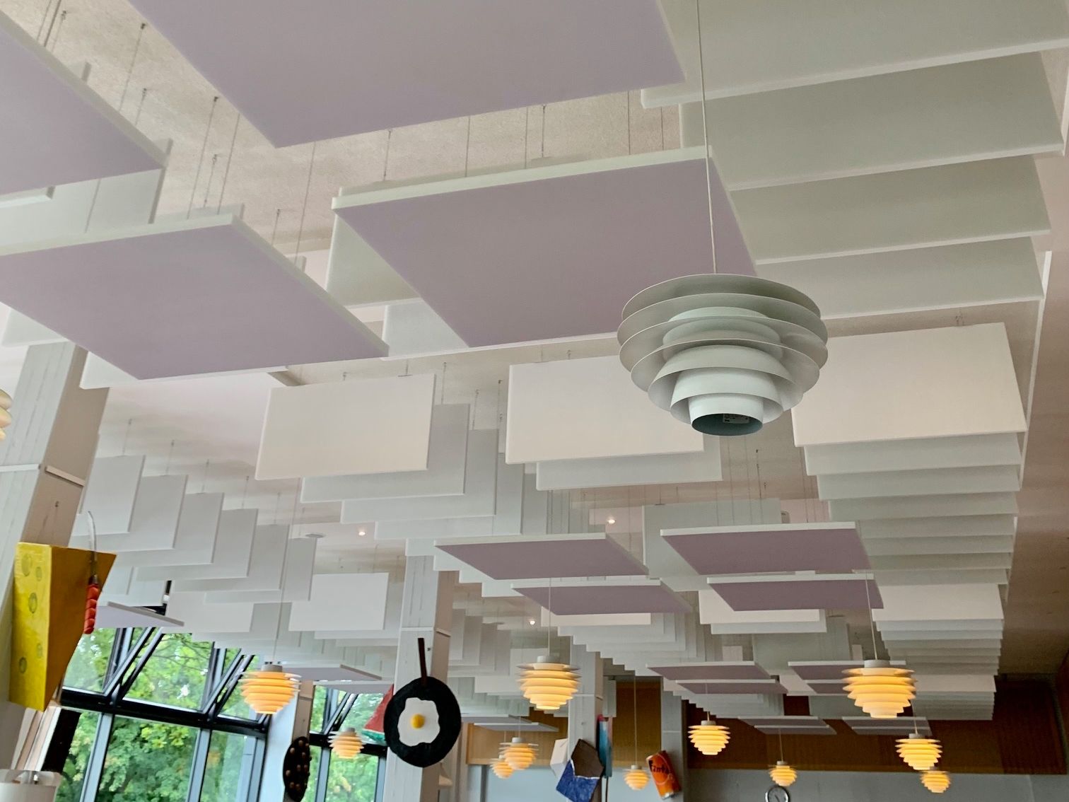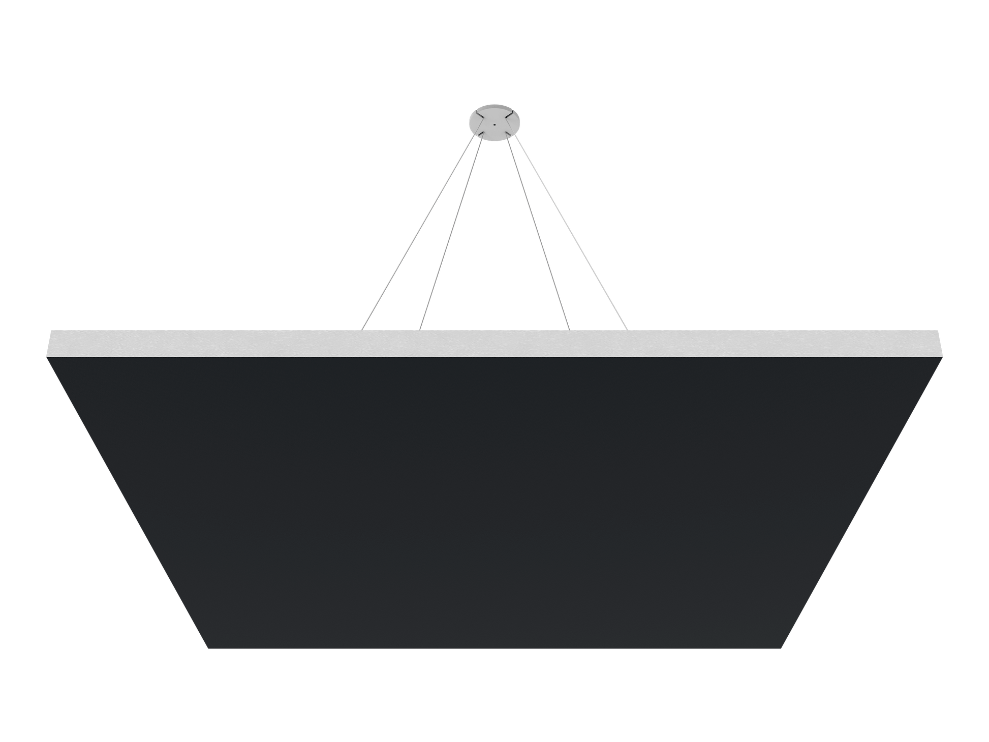 Dank seiner hängenden Konstruktion bietet dieses Akustik-Deckensegel die doppelte Absorptionsfläche im Vergleich zu klassischen Wandpaneelen – ideal zur Verbesserung der Raumakustik in Bereichen mit hohen Decken.