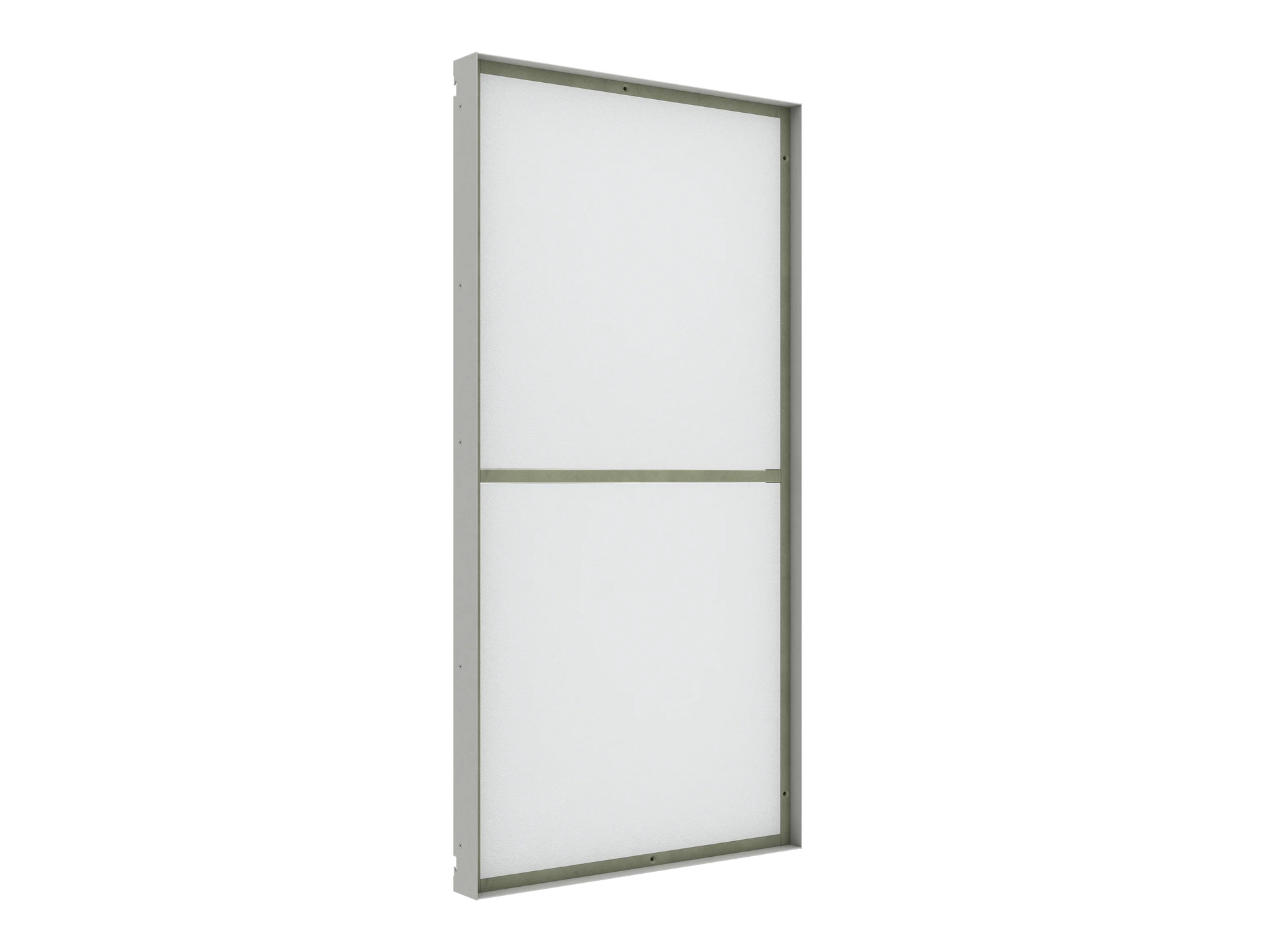 Der Rahmen kann sowohl an Wänden als auch an Decken montiert werden und ist aus feuchtigkeitsbeständigem MDFund lackiertem Stahl gefertigt. Er wurde so gestaltet, dass er die weißen Seiten des Flat Panel VMT stilvoll abdeckt und optisch aufwertet.