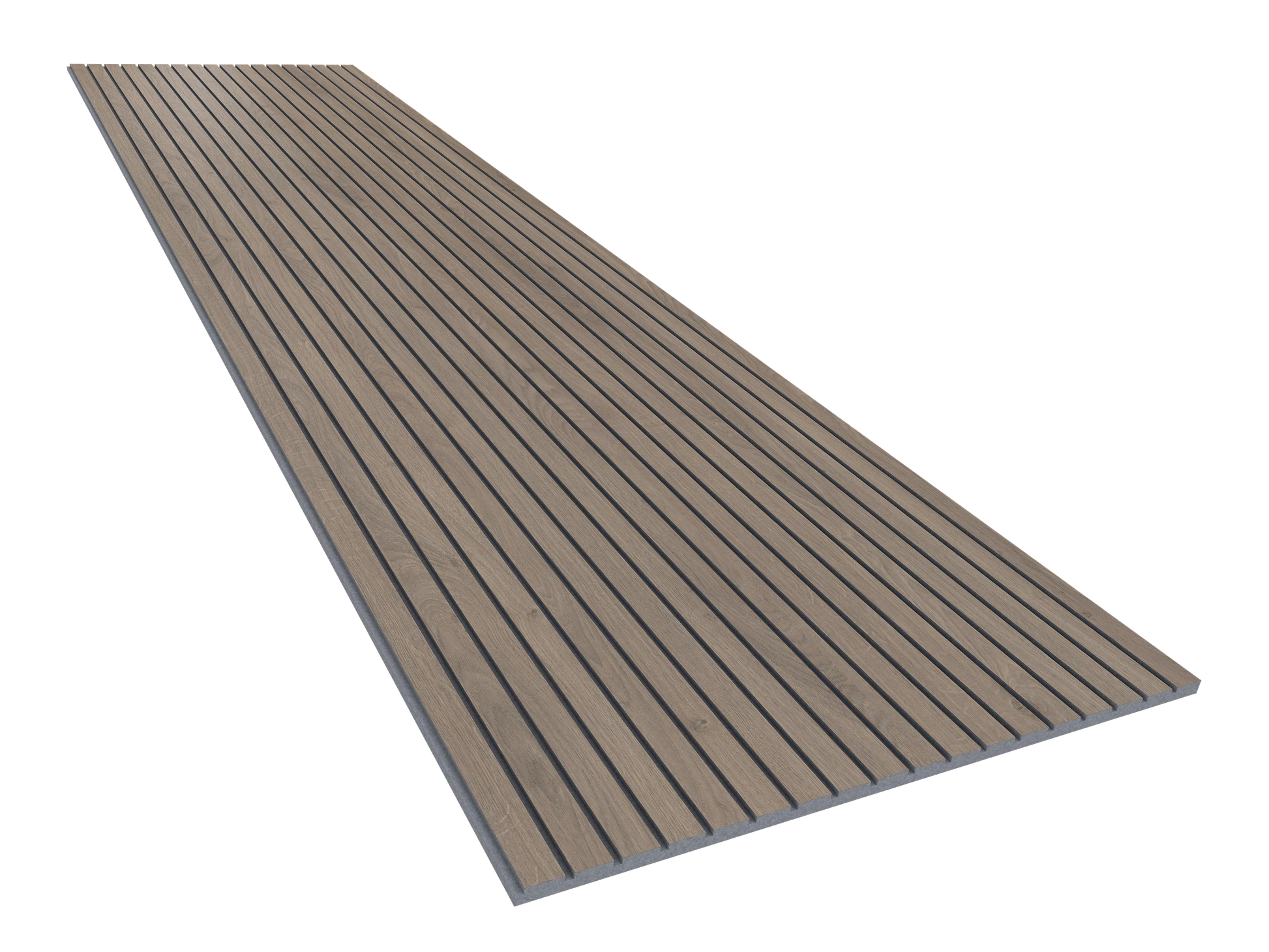 VicStrip-Akustikpaneele sind in zwei Längen erhältlich: 240 × 60 cm und 270 × 60 cm – in vier Holzdekoren sowie in Mattweiß und Mattschwarz.