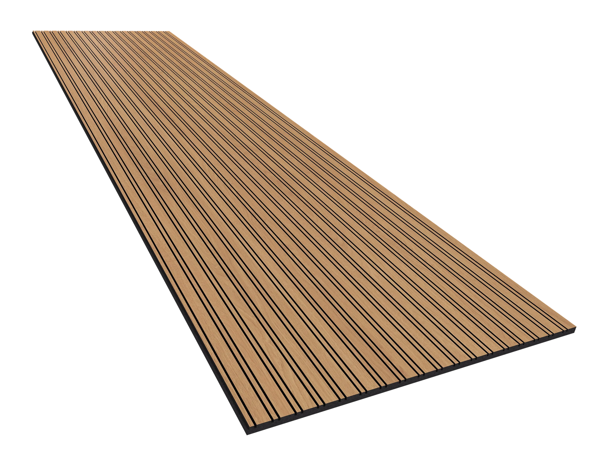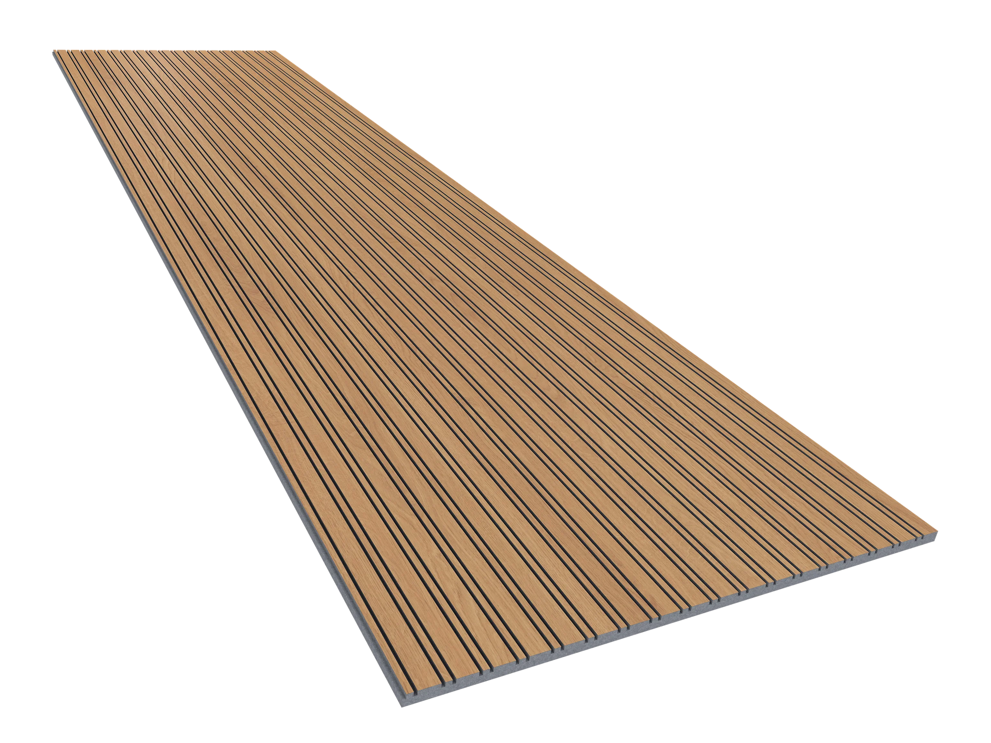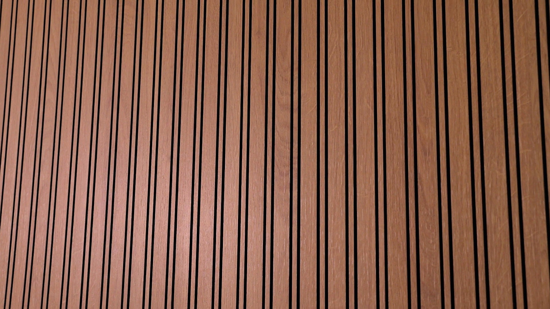 Feine Fugen akzentuieren die Hauptfarbe – ob Holzstruktur oder Mattlack – und machen VicStrip Double zu einer stilvollen Alternative zu herkömmlichen Akustikpaneelen.