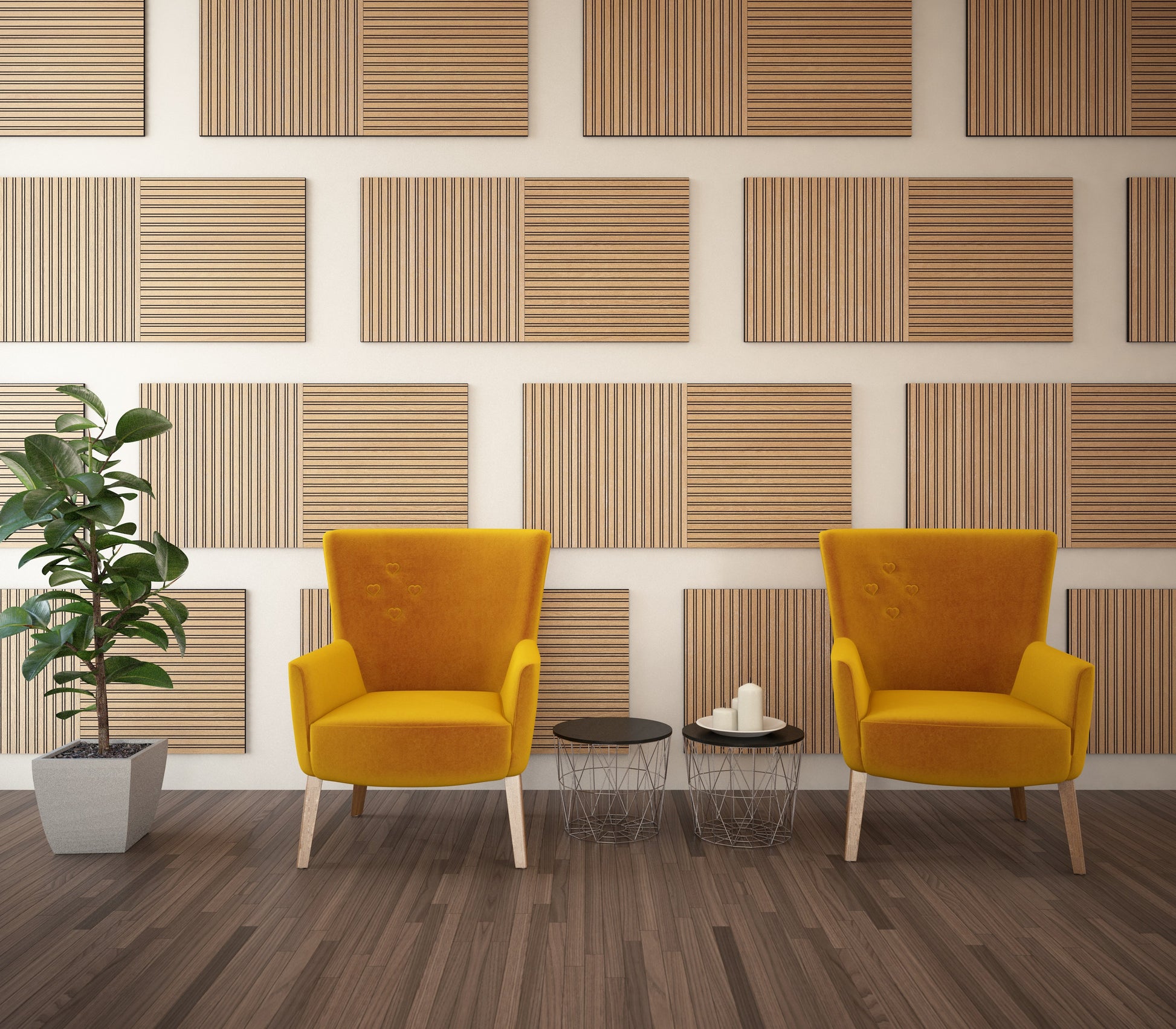 Das kürzere Maß erleichtert das Zuschneiden und Kombinieren mit anderen Formaten oder quadratischen Paneelen – für kreative Akustiklösungen mit harmonischem Design.